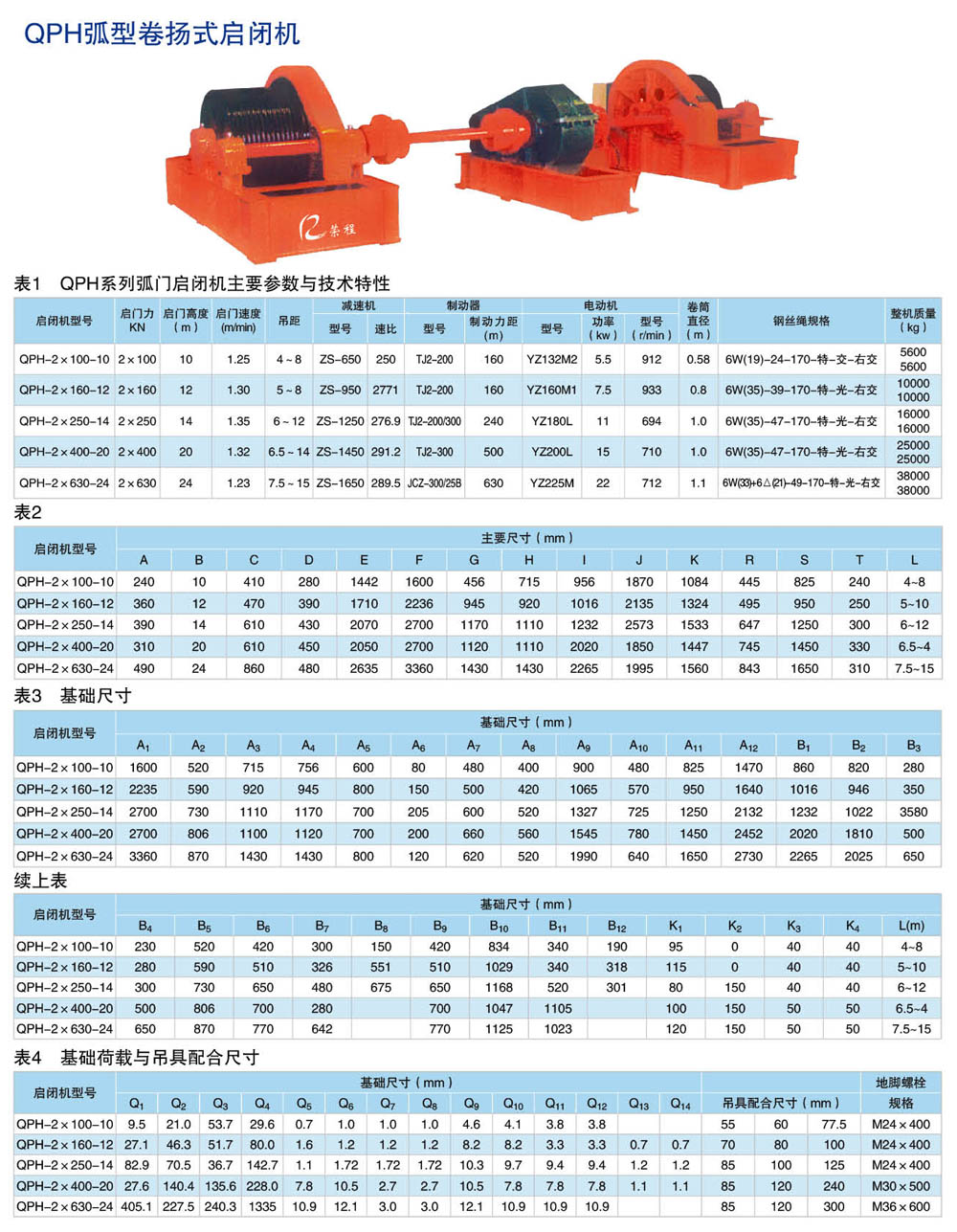 新河縣榮程水利機械廠卷揚啟閉機有多種型號:可以分為QPQ型普通卷揚啟閉機、QPK型快速卷揚啟閉機、QPG型高揚程卷揚啟閉機、QPT型臺車式卷揚啟閉機,QPM型門式卷揚啟閉機,QH型弧門卷揚啟閉機。卷揚啟閉機又分為:平門卷揚式啟閉機;弧形門卷揚式啟閉機;雙吊點卷揚式啟閉機;快速卷揚式啟閉機;移動式臺車啟閉機;雙吊點卷揚式啟閉機分為:集中驅(qū)動和單獨驅(qū)動兩種;卷揚式啟閉機手搖、電動兩用式規(guī)格分為:5噸、8噸、12噸、16噸、25噸;電動式規(guī)格分為:40噸、63噸、80噸、100噸、125噸、160噸、200噸,可以根據(jù)用戶要求設(shè)計,并能生產(chǎn)雙吊點卷揚式啟閉機,該機是一種水利工程專用機械,廣泛用于水利工程閘門的啟閉,是農(nóng)田灌溉、水產(chǎn)養(yǎng)殖、農(nóng)業(yè)經(jīng)濟開發(fā)區(qū)、污水處理廠、水利發(fā)電站、水庫(水閘、堤壩、隧道、管 道)等進水、退水閘的配套機械,山區(qū)、平原有、無電地區(qū)均可使用。