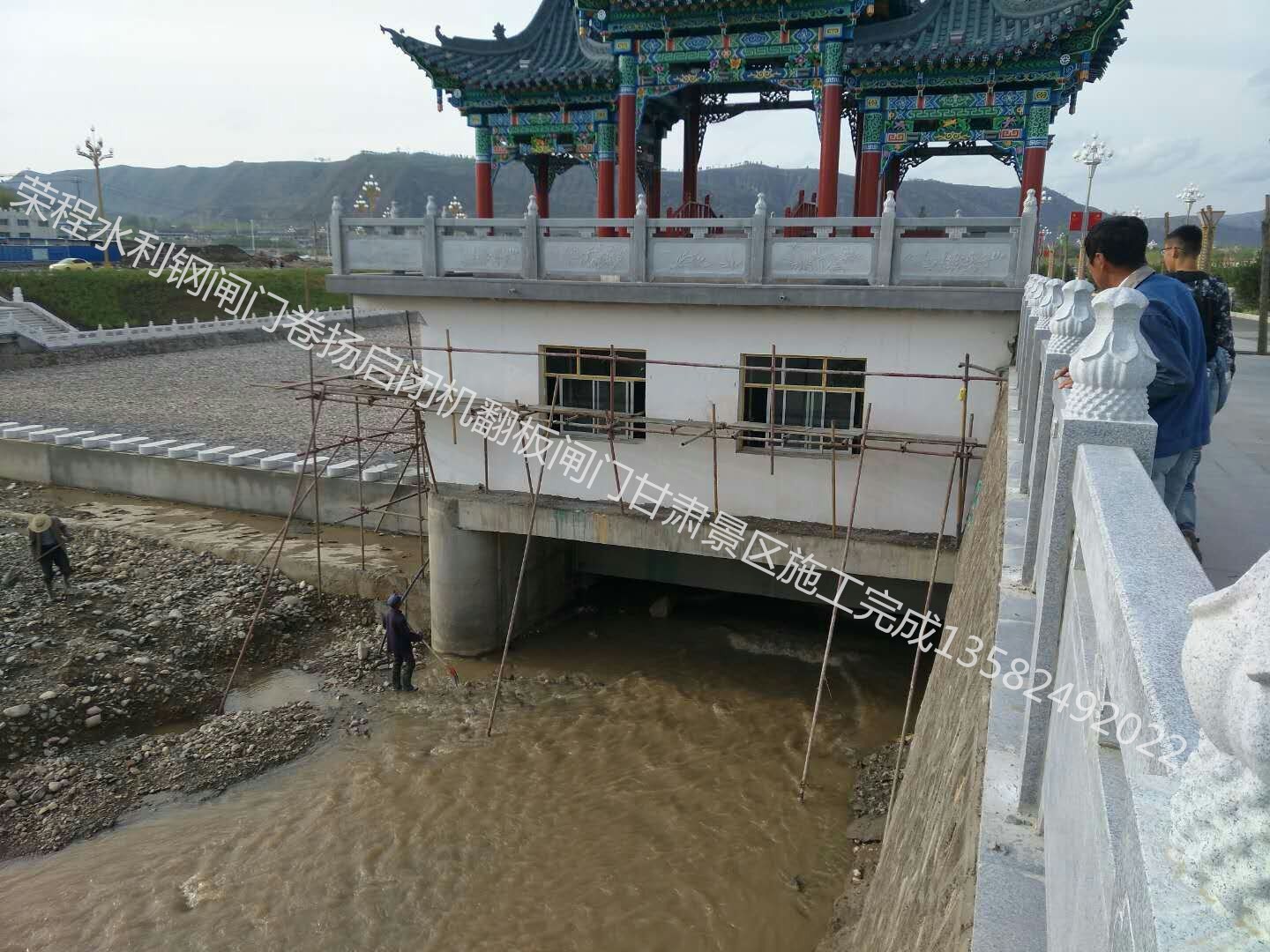 液壓景觀壩是20多種規格型號閘門中的一種,該設備由弧形(或直線)壩面、電機螺旋桿、液壓桿、支撐桿、液壓缸、啟動電站和液壓泵站組成。 用螺旋桿液壓缸直頂以底部為軸的活動攔水壩面的背部,實現升壩攔水,降壩行洪的目的。采用滑動支撐桿支撐活動壩面的背面,構成穩定的支撐墩壩。采用小液壓缸及限位卡,形成支撐墩壩固定和活動的相互交換,達到固定攔水,活動降壩的目的。采用浮標開關,控制操作液壓系統,達到無人管理,根據洪水漲落,實現活動壩面的自動升降。
