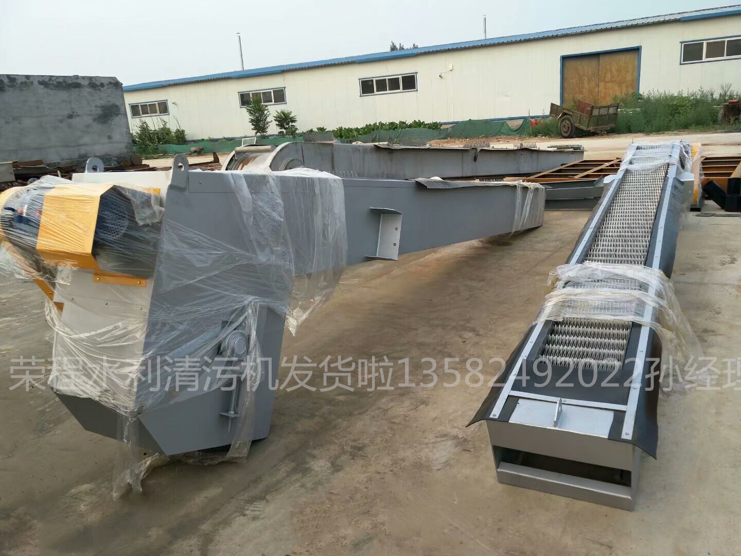 清污機是由一個獨特的耙廠組裝成一組旋轉(zhuǎn)柵格鏈組成的。在電機減速器的驅(qū)動下,耙鏈的鏈條與水流相反。