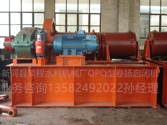 卷揚(yáng)啟閉機(jī)是由人力或機(jī)械動力驅(qū)動卷筒、卷繞繩索來完成牽引工作的裝置?梢源怪碧嵘、水平或傾斜拽引重物。卷揚(yáng)啟閉機(jī)分為手動卷揚(yáng)機(jī)和電動卷揚(yáng)啟閉 機(jī)兩種,F(xiàn)在以電動卷揚(yáng)啟閉機(jī)為主。電動卷揚(yáng)啟閉機(jī)由電動機(jī)、聯(lián)軸節(jié)、制動器、齒輪箱和卷筒組成,共同安裝在機(jī)架上。對于起升高度和裝卸量大工作頻繁的情 況,調(diào)速性能好,能令空鉤快速下降。對安裝就位或敏感的物料,能用較小速度。