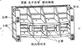 門葉結構是用來封閉和開啟孔口的活動擋水結構。平面鋼閘門的門葉結構總圖。由圖可見,門葉結構是由面板、梁格、橫向和縱向聯結系、行走支承(滾輪或滑 塊)以及止水等部件所組成。